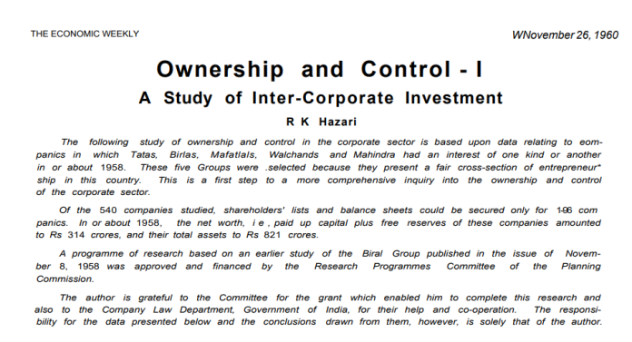 3-part series published in The Economic Weekly in the issues dated November 26, December 3, December 10, 1960 and a supplementary note in the issue dated February 18, 1961