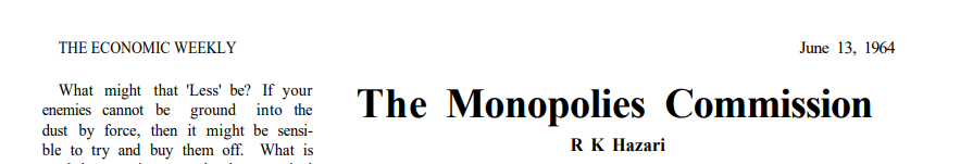 The report of the Monopolies Commission cannot be treated with the indifference (or amusement) which was extended to the report of the Mahalanobis Committee. Too many undertakings have been given about implementing its recommendations and a draft bill is incorporated in the report.