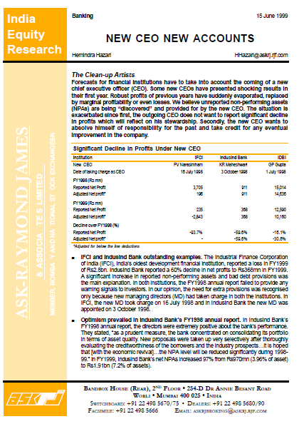 Forecasts for financial institutions have to take into account the coming of a new chief executive officer (CEO). Some new CEOs have presented shocking results in their first year. Robust profits of previous years have suddenly evaporated, replaced by marginal profitability or even losses.