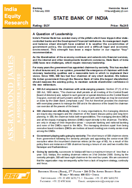 Post this report and the subsequent media coverage, the Indian government changed the selection policy of appointment of SBI chairman which was earlier solely on the basis of seniority.