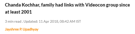 Such conduct by a CEO of a major Indian bank is appalling, and if the board was aware of her investment and still ignored it, it would be a severe indictment of the entire board of directors of ICICI Bank. The competence of the ICICI Bank’s board is evident as with all its powers it was unable to investigate the Kochhar-Videocon relationship despite a complaint which went public in 2016 and it took a journalist to probe into public disclosures to uncover this relationship. With this information now in the public domain thanks to Jayshree P. Upadhyay, the journalist at the Mint, it is no longer an issue of the ICICI CEO’s kith and kin, but of her personally, and clearly makes her position as CEO untenable.
