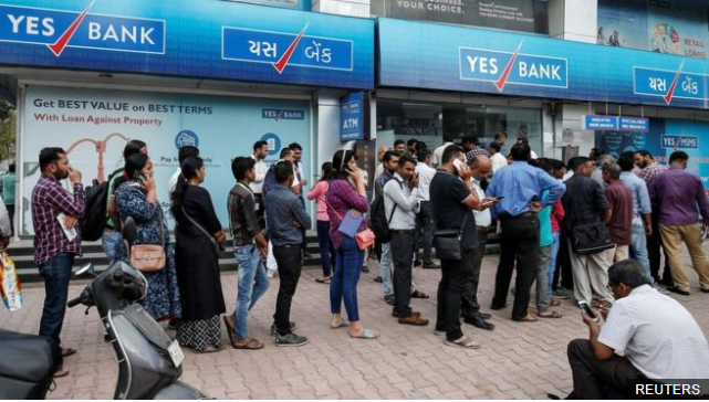 Depositors with Yes Bank can now only withdraw the equivalent of about $630 (£486) during a one-month moratorium.