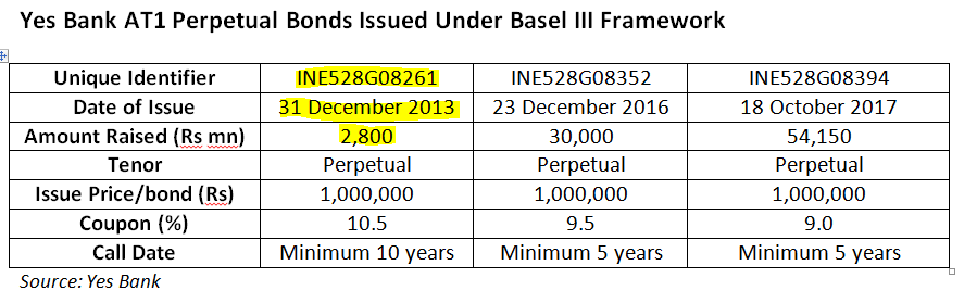 Yes Bank AT1 Perpetual Bonds Issued Under Basel III Framework