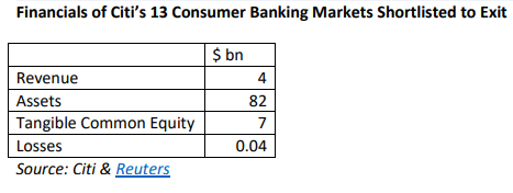 EXECUTIVE SUMMARY. Citi’s decision to withdraw from consumer banking in 13 geographies, including India, and focus instead on corporate/institutional banking, is a lesson in missed opportunities, at least in the case of India. Citi India was the pioneer in consumer banking, in products such as mortgages and credit cards, but it flourished when there were only government banks. The post-1991 entry of the new private banks in India which concentrated on the retail and corporate customers of foreign banks, and the post-Lehman crisis in 2008, heralded the decline of foreign banks in India.