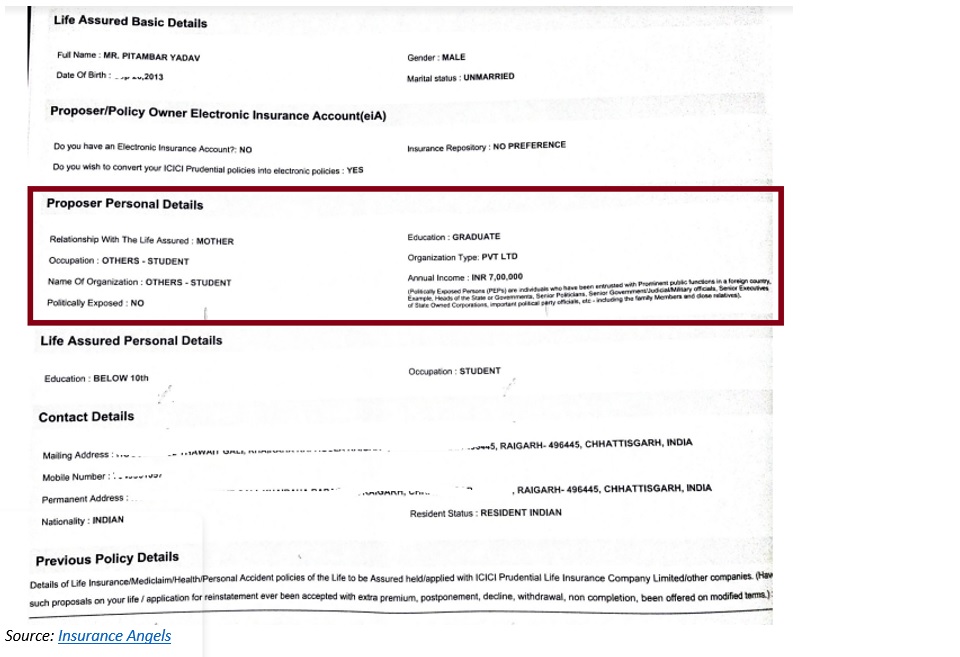Insurance Angels, an organisation assisting customers who have been mis-sold insurance, has highlighted several cases of mis-selling of IPru Life’s ULIP’s by ICICI Bank. For the sake of brevity, we will be discussing only two in this article. What is alarming is the misleading documentation submitted by ICICI Bank officials to ensure policies are sold to individuals who do not qualify for insurance, and the sheer incompetence or complicity of IPru Life’s underwriting in approving such policies. It is strange that while ICICI Bank publicly acknowledges the adverse impact of mis-selling traditional life insurance, it appears oblivious to the mis-selling of ULIPs to its customers.