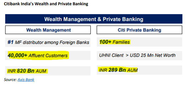 EXECUTIVE SUMMARY. Axis Bank’s acquisition of Citibank India’s consumer finance division has been applauded by the stock market, and the bank has outperformed Nifty-50 and the Bank Nifty since the announcement.