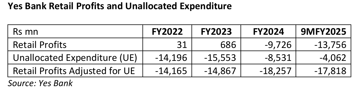 It is unfortunate that Yes Bank’s recovery in the post moratorium period has been again stalled by mismanagement of its own making. Here was a bank which not only had India’s largest bank as a key shareholder, but other banks and prominent private equity firms as equity holders, and had been recapitalised adequately for growth (CET 1 ratio of 13.1% in 3QFY2025). All it had to do was implement a profitable retail strategy which could contribute to the bank’s overall profitability, instead of being a drain on it. In contrast, many Non-Bank Finance Companies (NBFCs) in the last 5 years in a competitive environment, strengthened their retail presence and rewarded shareholders like Bajaj Finance, Cholamandalam Investment and Finance, Shriram Finance and Muthoot Finance. Yes Bank’s retail misadventure should be a case study on how not to conceive and implement a retail strategy dependent on DSAs, characterised by high operating expense, poor credit risk management, improper pricing of assets, absence of genuine profits and presided over by a board of directors who slept while retail losses were piling up.