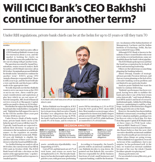 Hazari believes that the next chief executive should be an internal candidate since boards usually get an external candidate when thingsare going wrong. “When Bakhshi was appointed, I was not in favour of his candidature, but to my surprise, he has performed well. At the time,we wanted an external candidate because of the way the whole